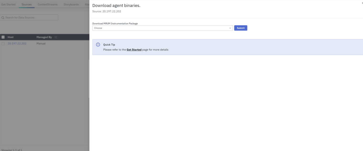 In this step, you define how the platform will manage the Mobile RUM data source. The table lists the added source and displays: