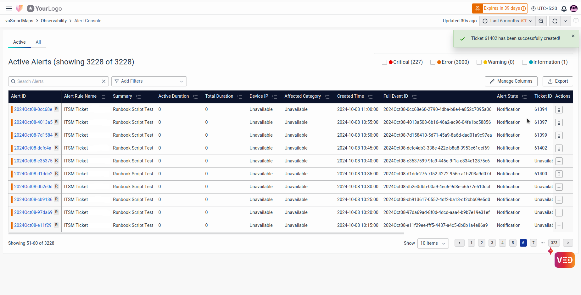 - Streamlined Workflow: Users can manage tickets directly from the Alerts pages, saving time and improving efficiency.