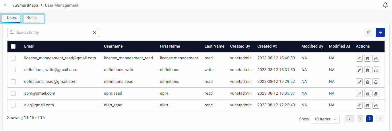 - Enhanced Security: User Management enhances the security of your vuSmartMaps environment. With RBAC, you can efficiently manage access by grouping users into predefined roles, saving time and effort.