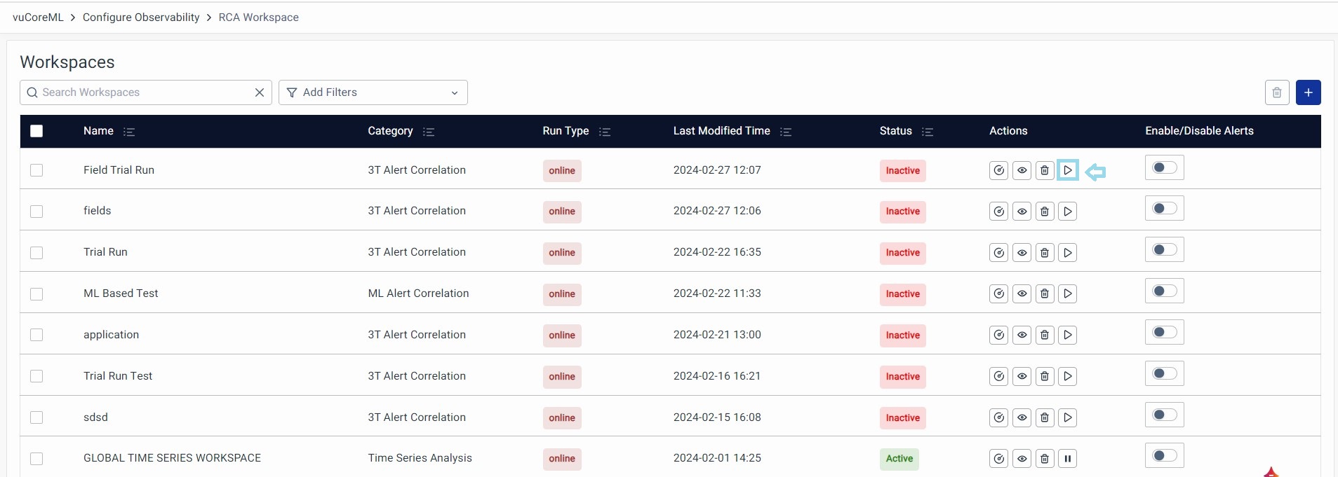 - Status: Indicates whether the workspace is active or inactive.