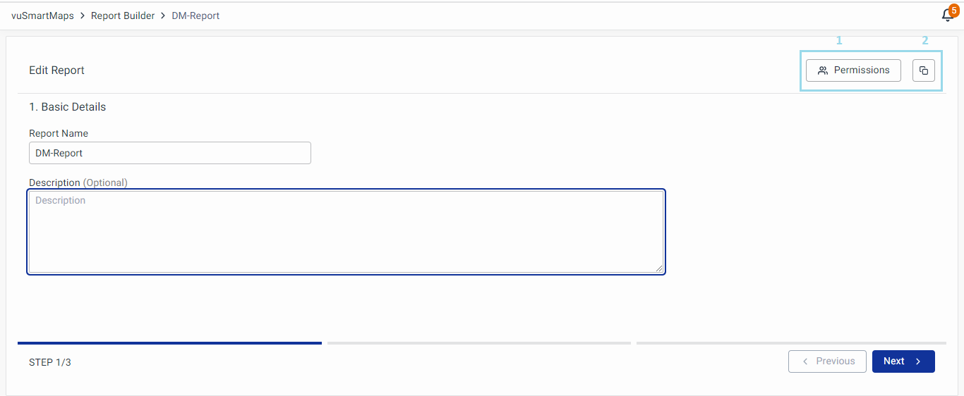 1. To make any changes in Reports, the following action buttons are available in the top right corner.
