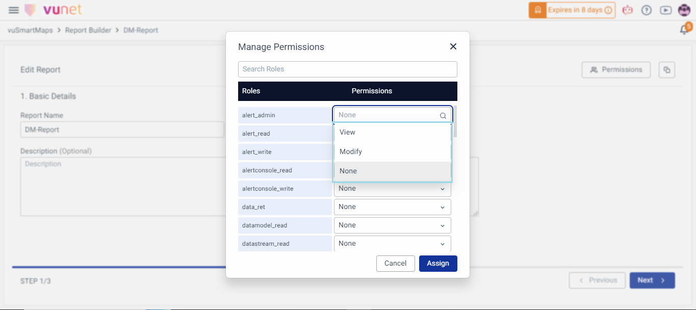 With object-level permissions, the user who has admin permission will be able to edit and delete the report. Click on Permissions to manage Object Level Permissions in Reports.