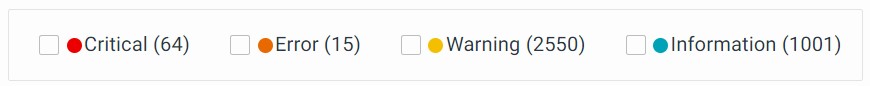 In the Alert Console, widgets categorize Alerts by severity, providing a summary of each category. These widgets display the total Alert count for different severities - Critical, Error, Warning, and Information. -