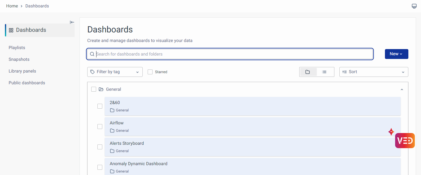 Dashboards are powerful tools that provide visual representations of data, making it easier to analyze and understand complex information. The dashboard is a collection of panels organized in rows. Each panel is a visualization unit with its data query editor. This editor is tailored to the panel’s chosen data source, helping you create the right visualizations.