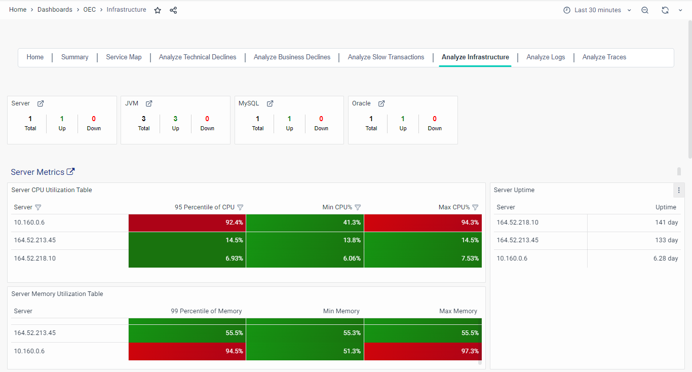 Additionally, you can also analyze the infrastructure through a storyboard to gain valuable insights into system components, performance metrics, databases, and servers for in-depth infrastructure analysis. This ensures a thorough understanding of infrastructure health, fostering optimal operation and enhancing user satisfaction.