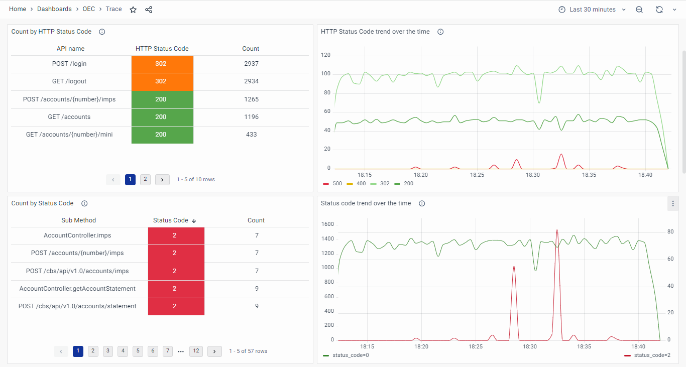 • Count by Status Code: It helps the user efficiently recognize performance degradation by examining the code value. It emphasizes the need for immediate action if the count of status codes other than 0 is abnormal