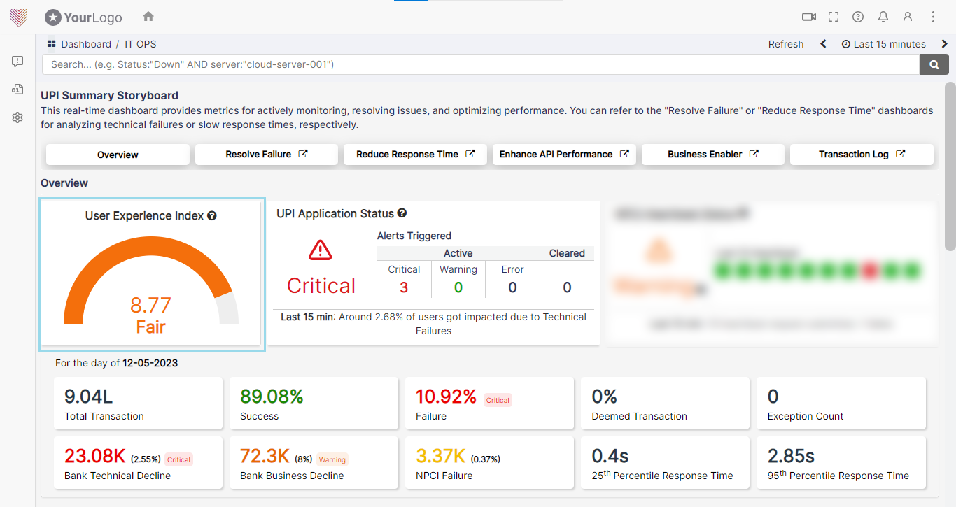The IT Ops Storyboard provides insights into flagged issues that require attention. This feature allows IT teams to prioritize and address critical issues promptly, minimizing the impact on the overall performance of the UPI application.