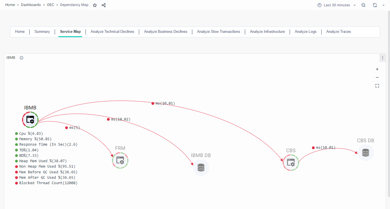 One of the standout features of vuSmarMaps is its ability to break down the entire business journey into micro-journeys. This granular approach allows businesses to identify specific touchpoints, understand user interactions, and pinpoint areas for improvement. Through the platform's business storyboard, users can visually navigate each step of the customer journey, enabling them to make informed decisions to enhance the overall customer experience. For example, the Service Map shown below helps to identify the failure node-wise and gives node-wise KPI details on mouse hover on each node.