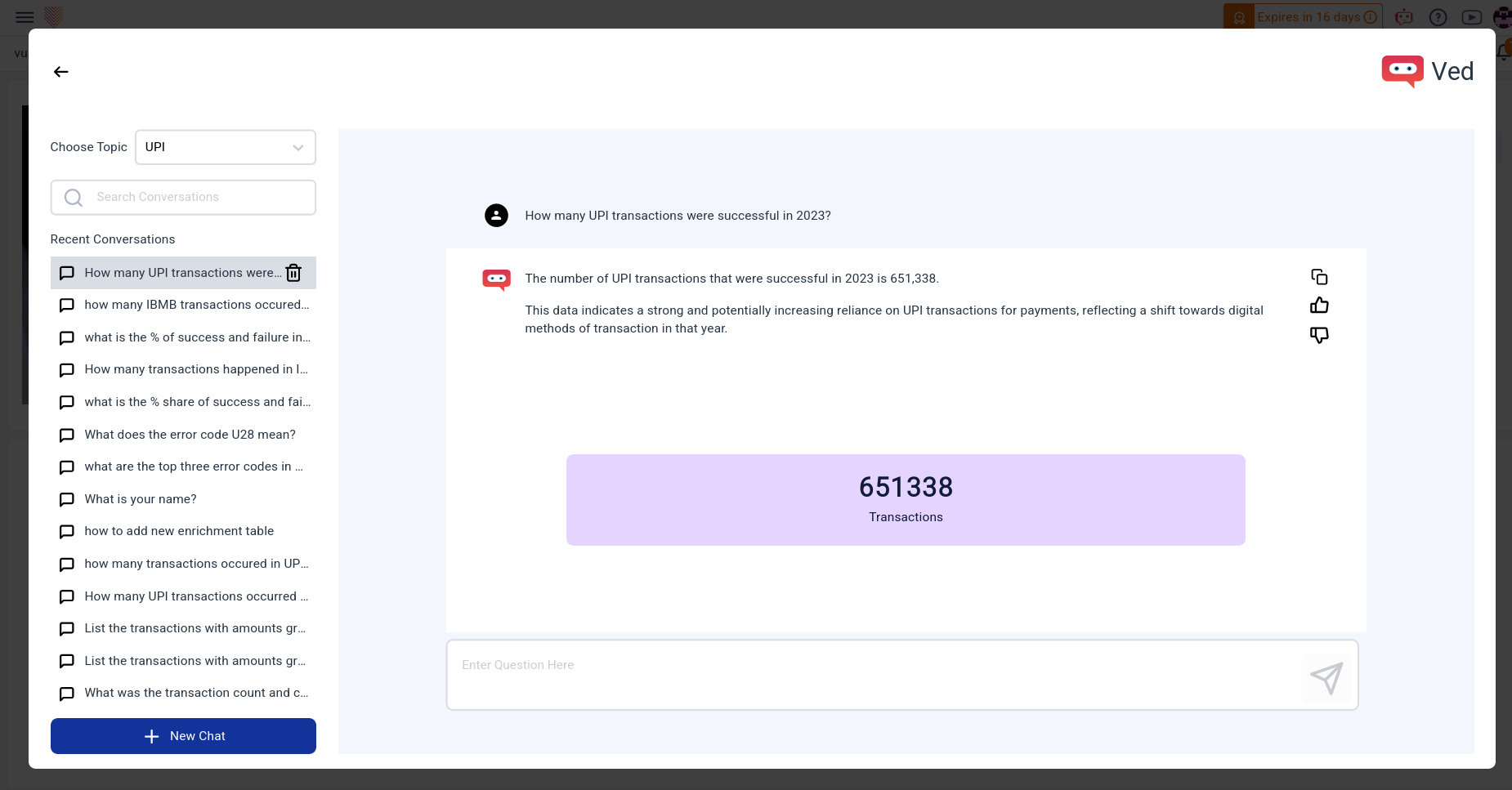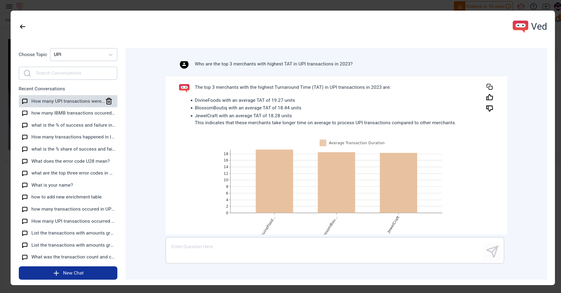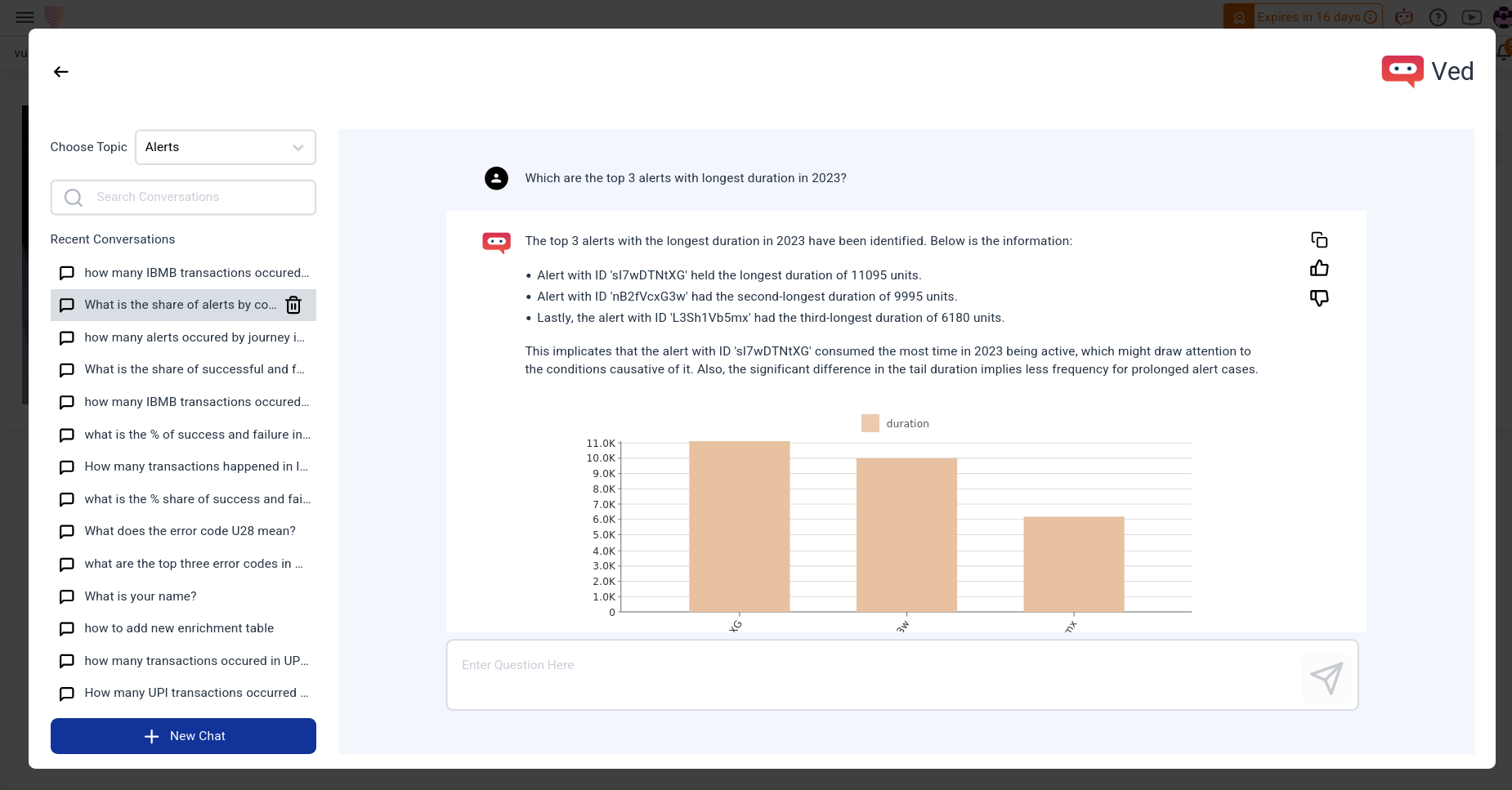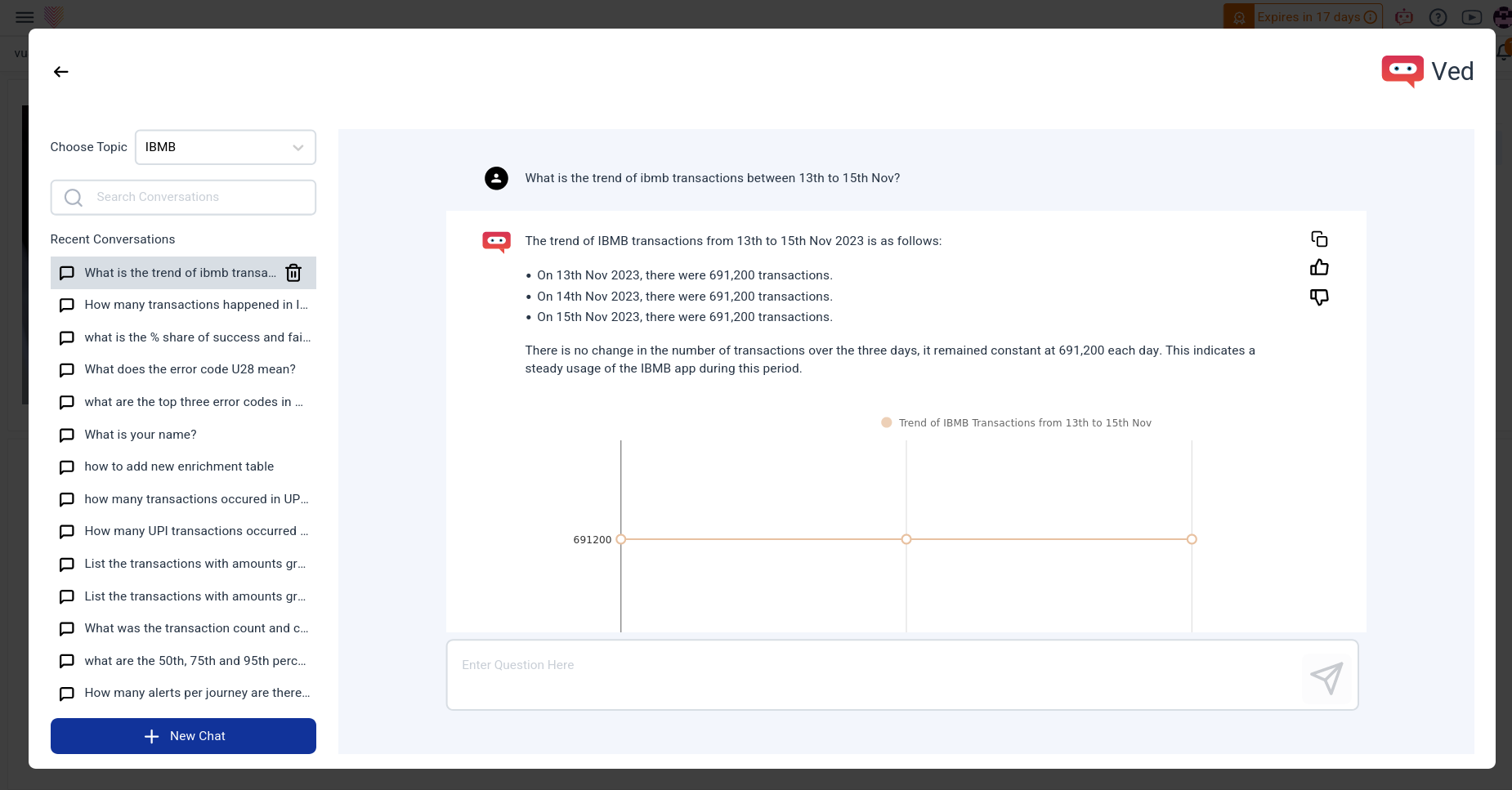Users actively shape responses through interactive feedback, and comprehensive answers, including text and charts, enrich the user experience. A one-click download feature ensures seamless documentation of interactions. Ved transforms the application experience, fostering increased engagement, streamlined support, and a more intuitive user journey.