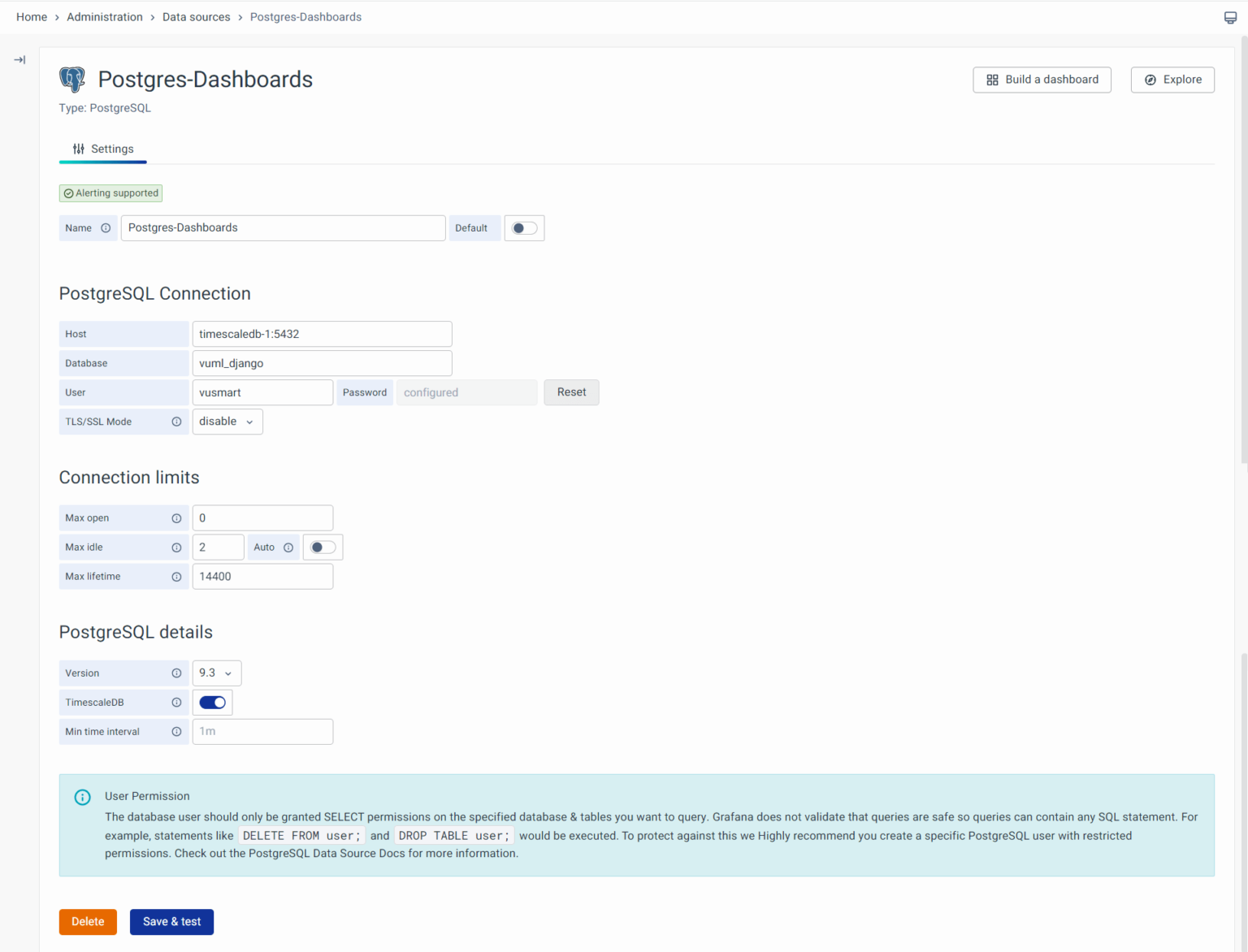 - TimescaleDB - A time-series database built as a PostgreSQL extension. When enabled, vuSmartMaps displays TimescaleDB-specific aggregate functions in the query builder.