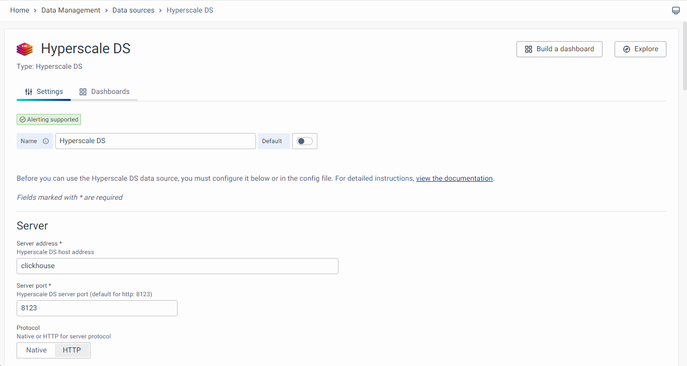 - Server Port - Hyperscale DS server port (8123: HTTP protocol or 9000: other).