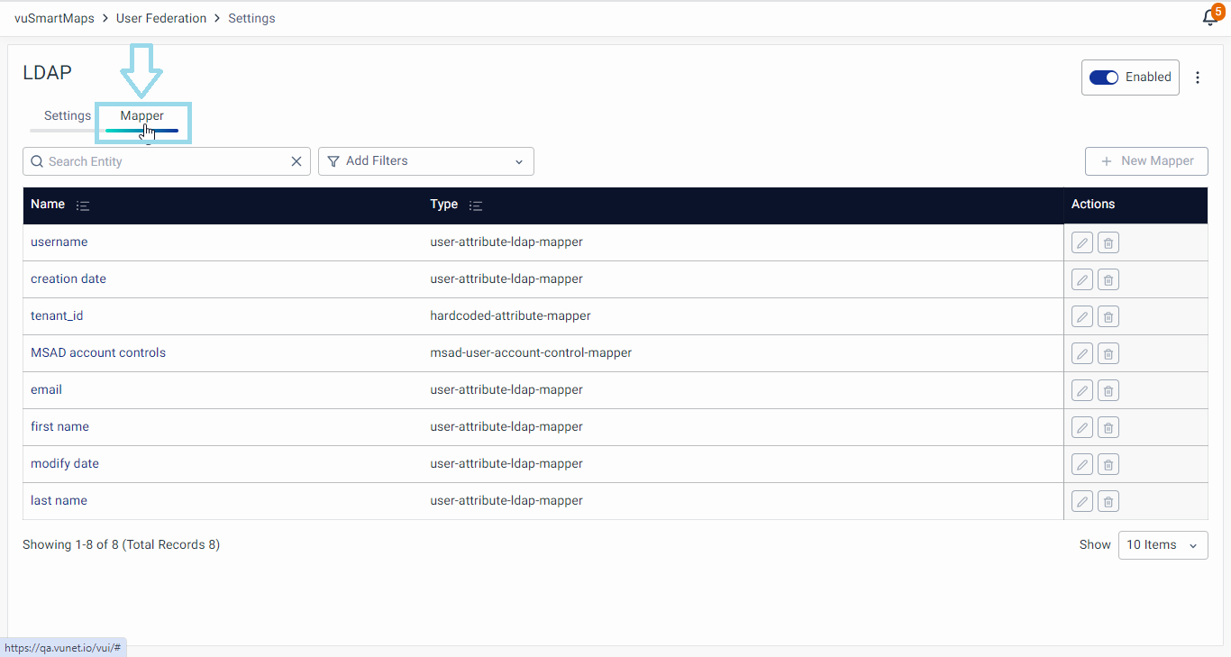 - Navigate to the Mapper tab to view all mappers associated with the LDAP provider.
