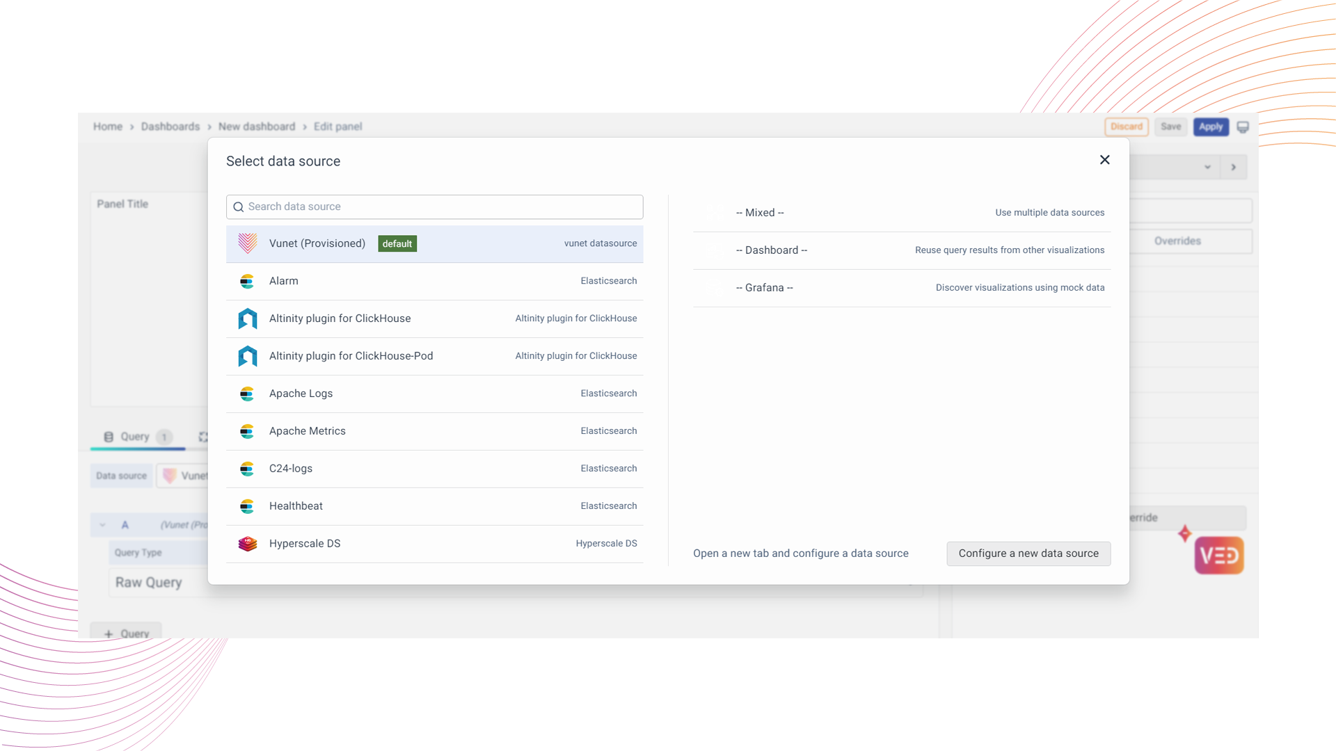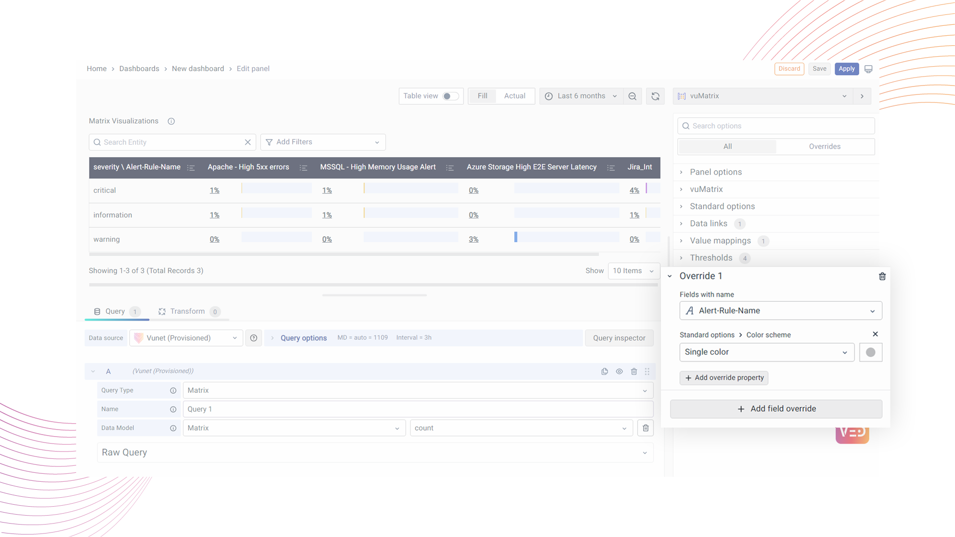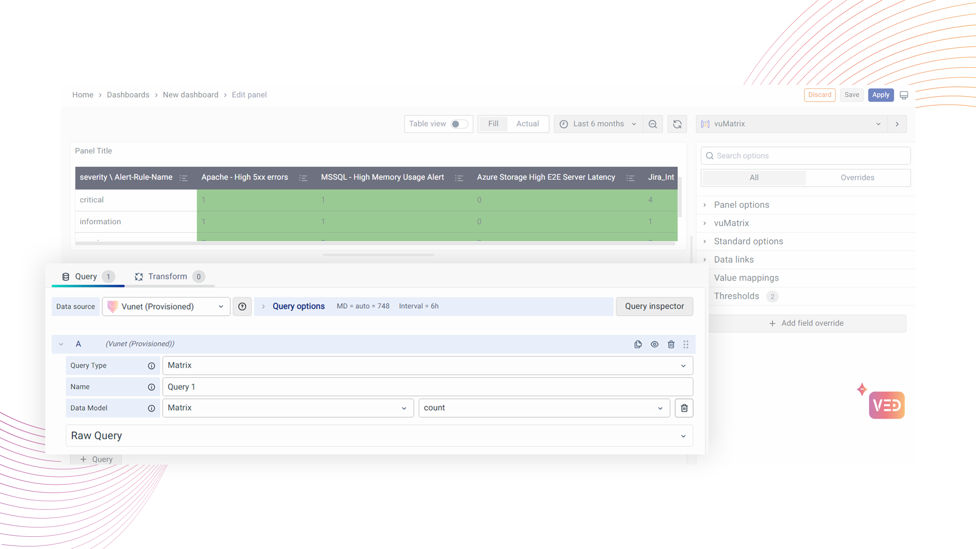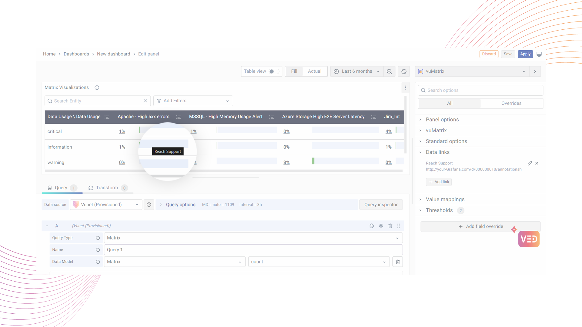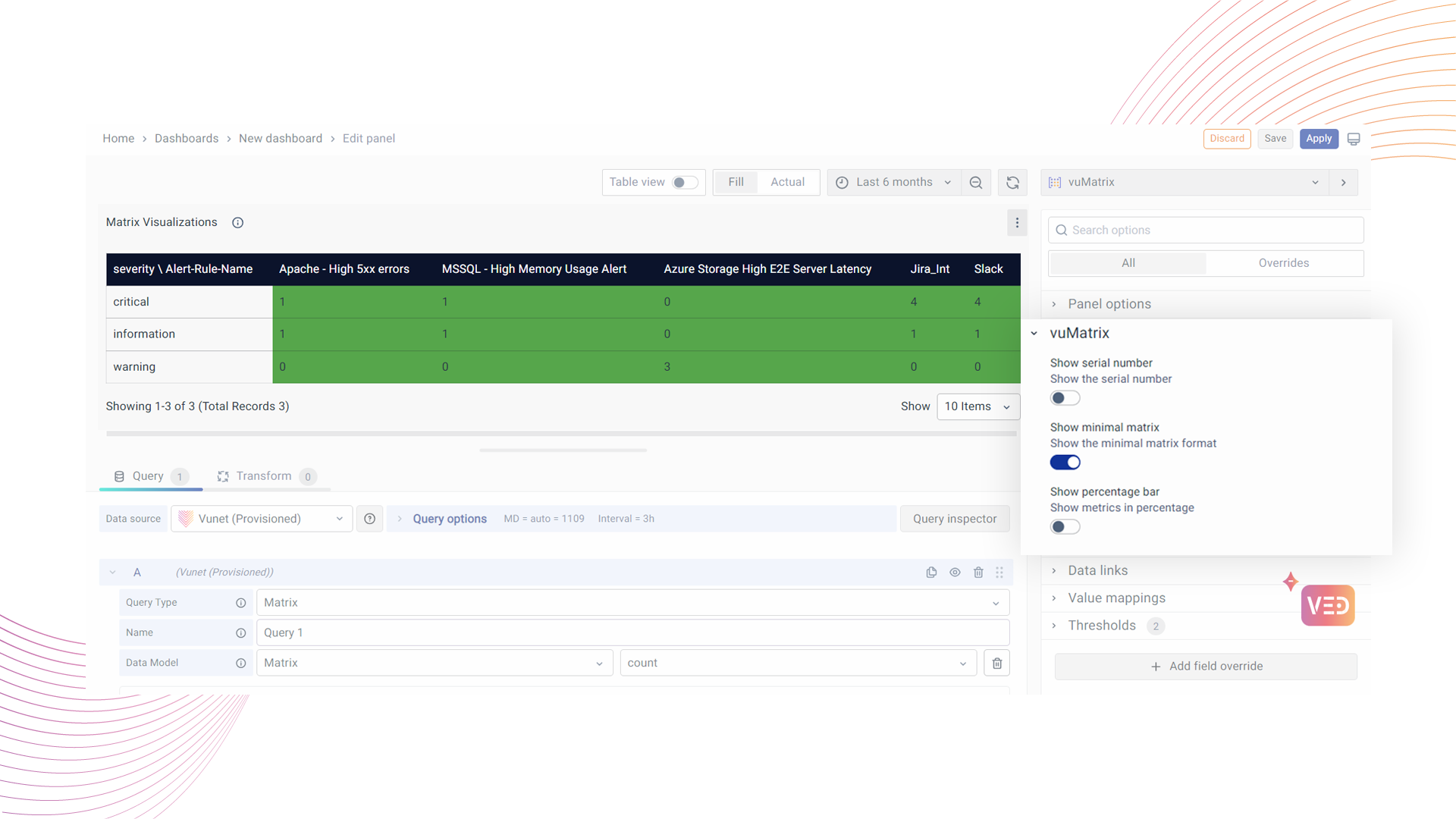 Before configuring, set the Data Source as “Vunet (provisioned) ”, as Matrix Visualization can be accessed only through this.