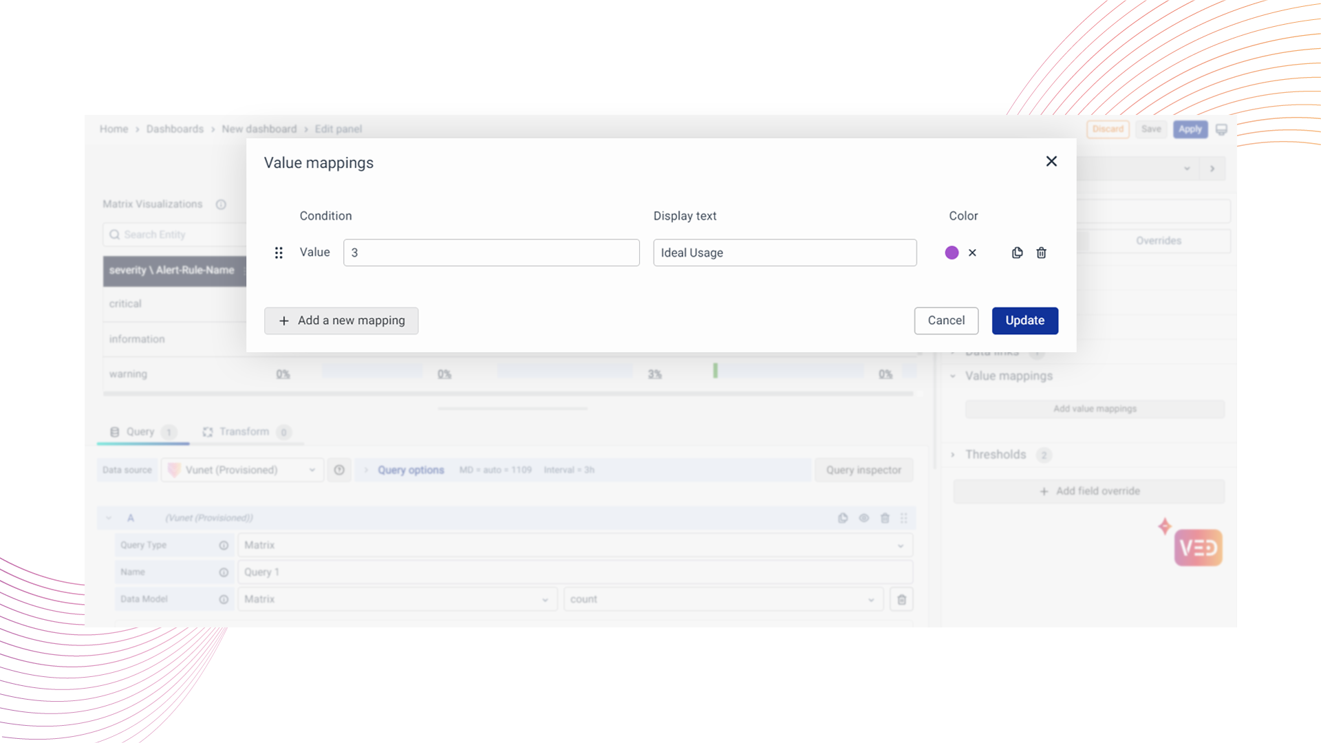 The Value Mappings option allows you to find a certain value and wherever the value lies, the display text will be displayed. If there is a similar value in the data, it will be highlighted in the form of the color selected.