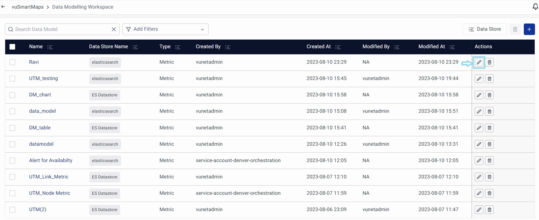 - Actions: Edit or Delete your Data Models using the buttons under this column.