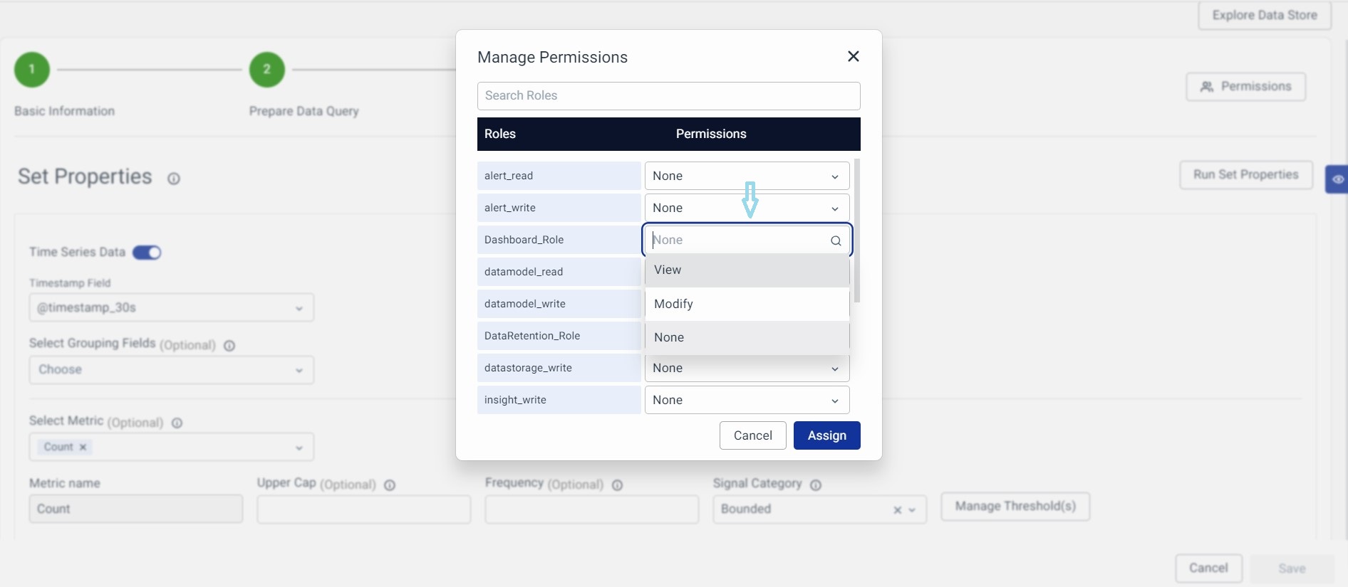 - Additional Attributes: you can select the metrics and buckets you want to expose through this data model. In the 'Set Properties' step, you can choose, and define properties for the metrics and buckets to be accessible to Data Model users.