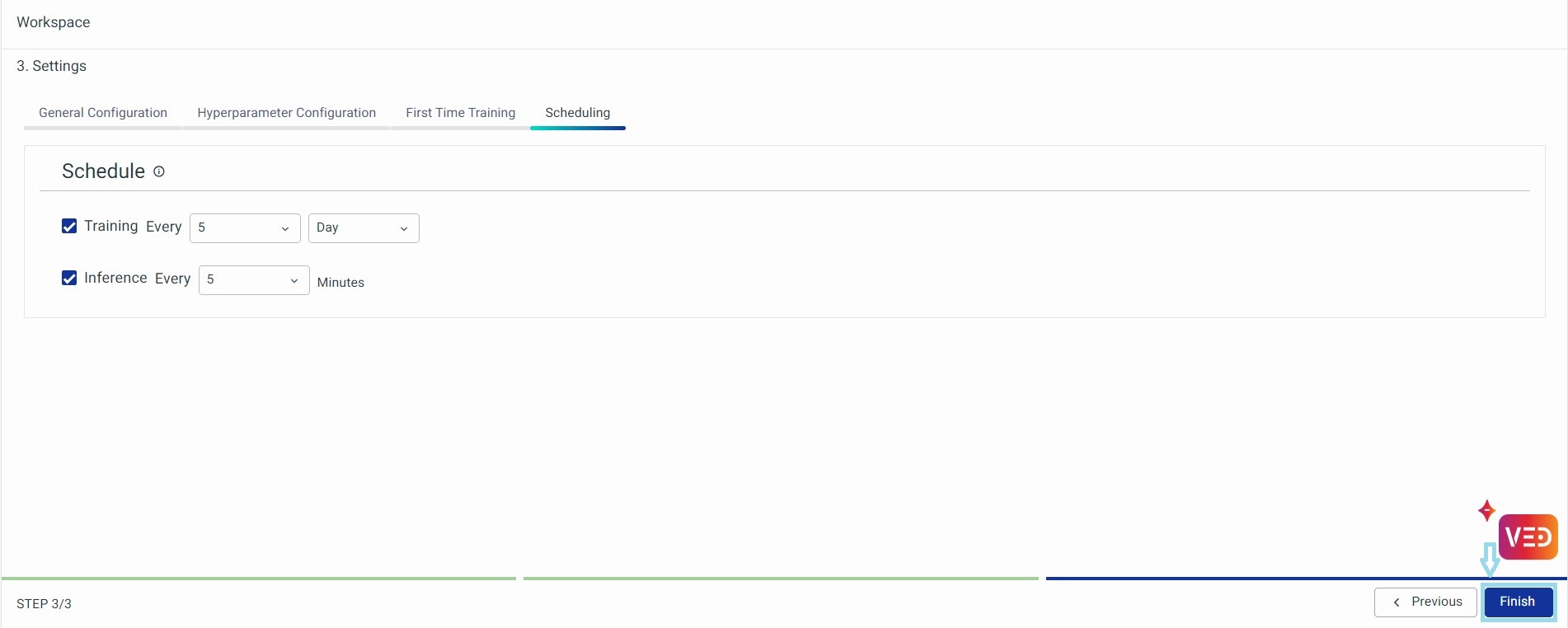 This is the second section of the Settings page. It has 2 main segments - Training and Inference.