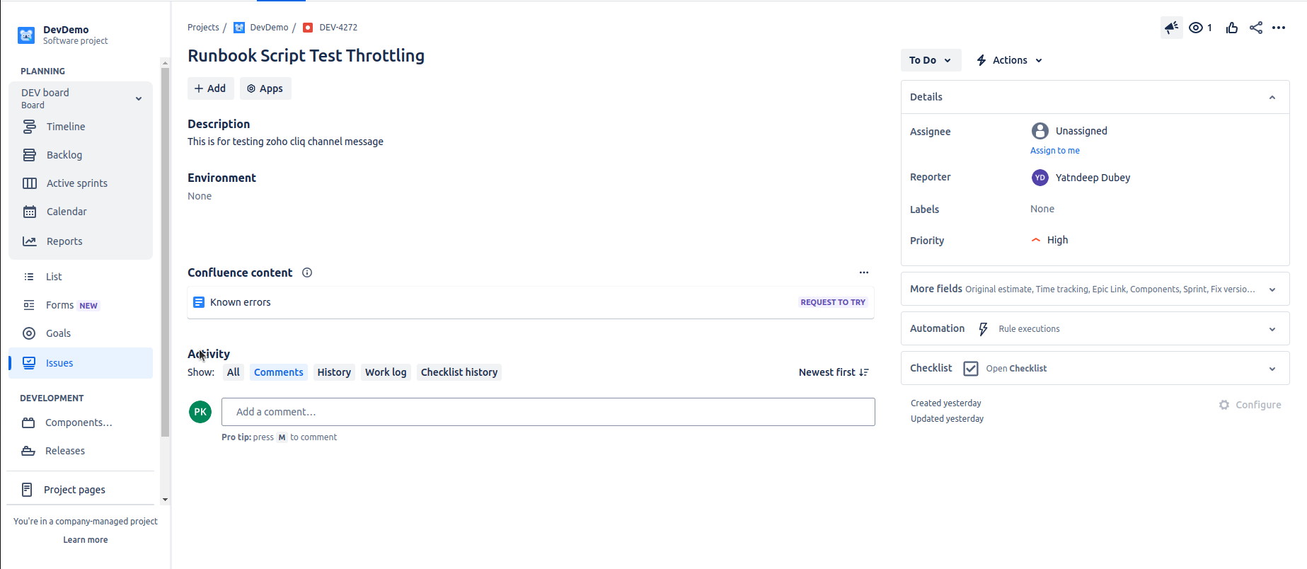 Select the Create New Ticket icon to initiate ticket creation in the Configured ITSM tool. A toast message will appear, indicating that the “Ticket creation is in progress...”.