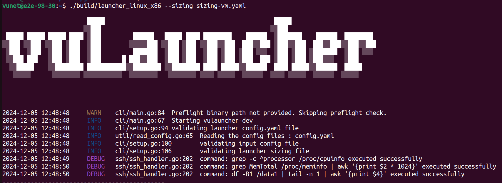 - SSH access to the VMs part of the cluster from the node running vuLauncher.