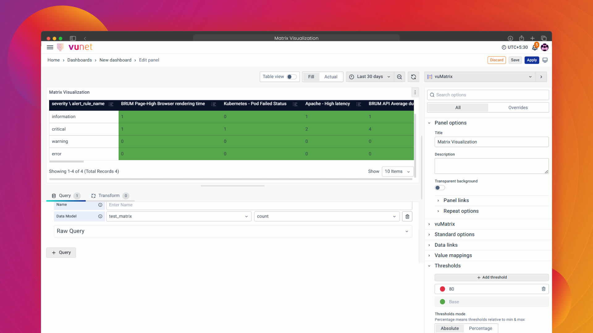 Matrix Visualization is a powerful tool for presenting data in a tabular format, making it easy to showcase aggregated metrics over a specific time period. It's especially useful when you need to display data across multiple groups.