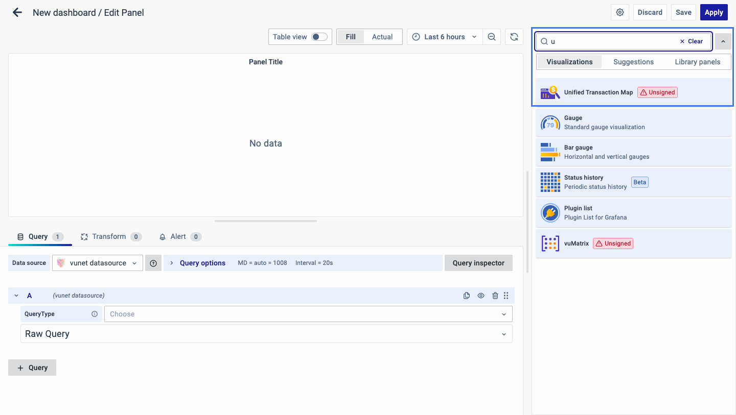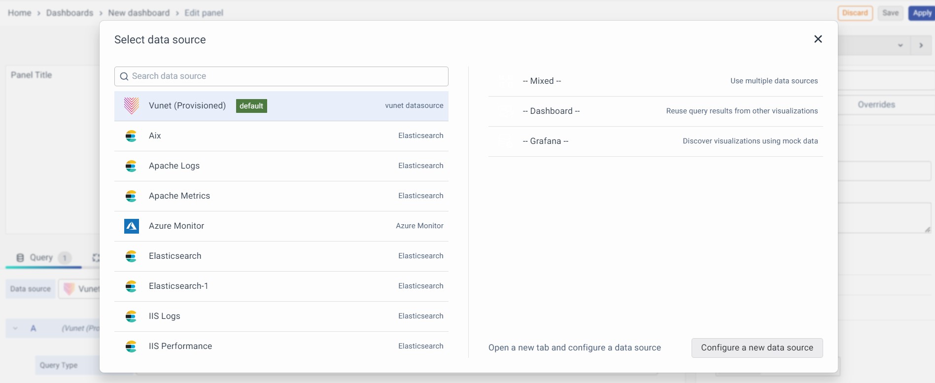 Before configuring, set the Data Source as “Vunet (provisioned) ”, as Insights can be accessed only through this.
