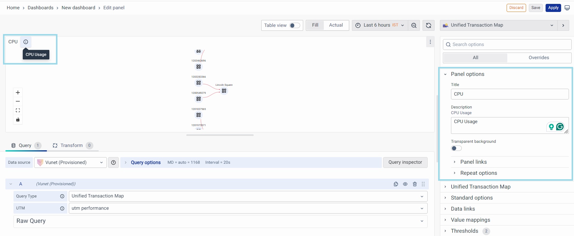 1. Name and Description: Give your panel a Name and Description. I have taken CPU storage as an example here.
