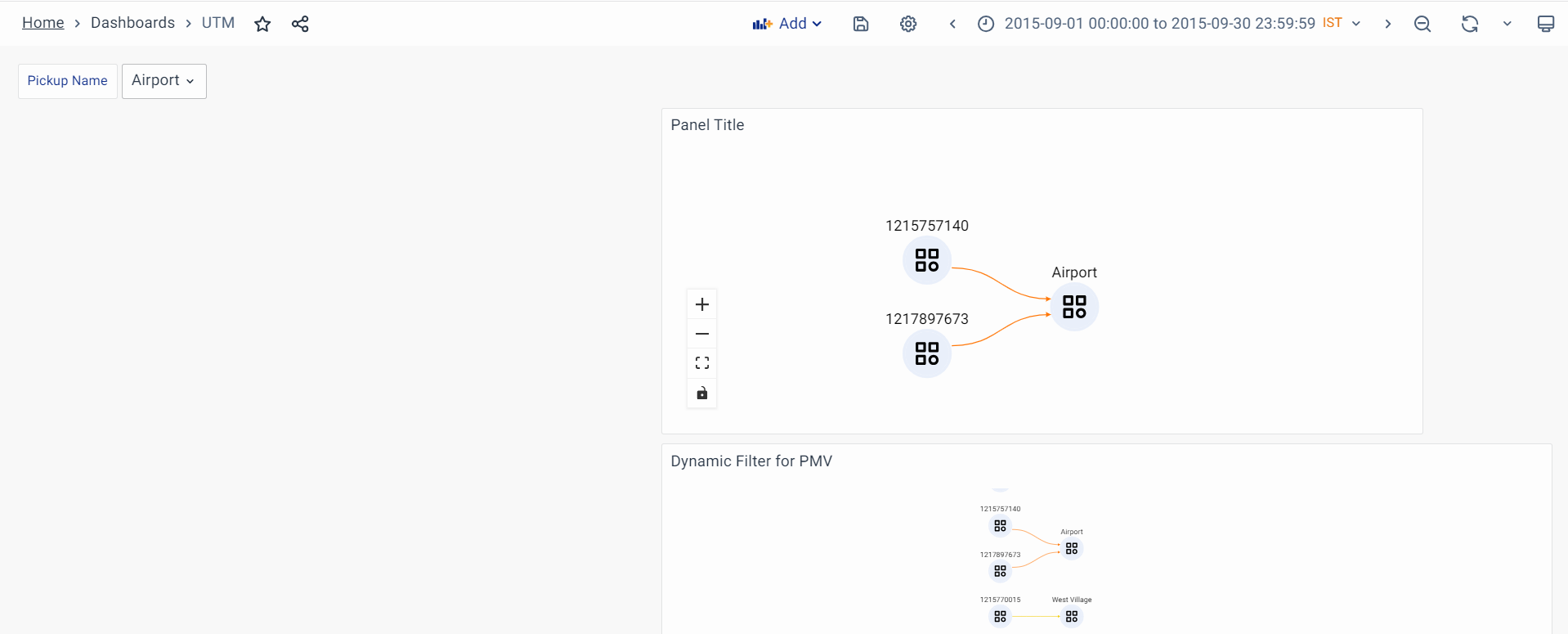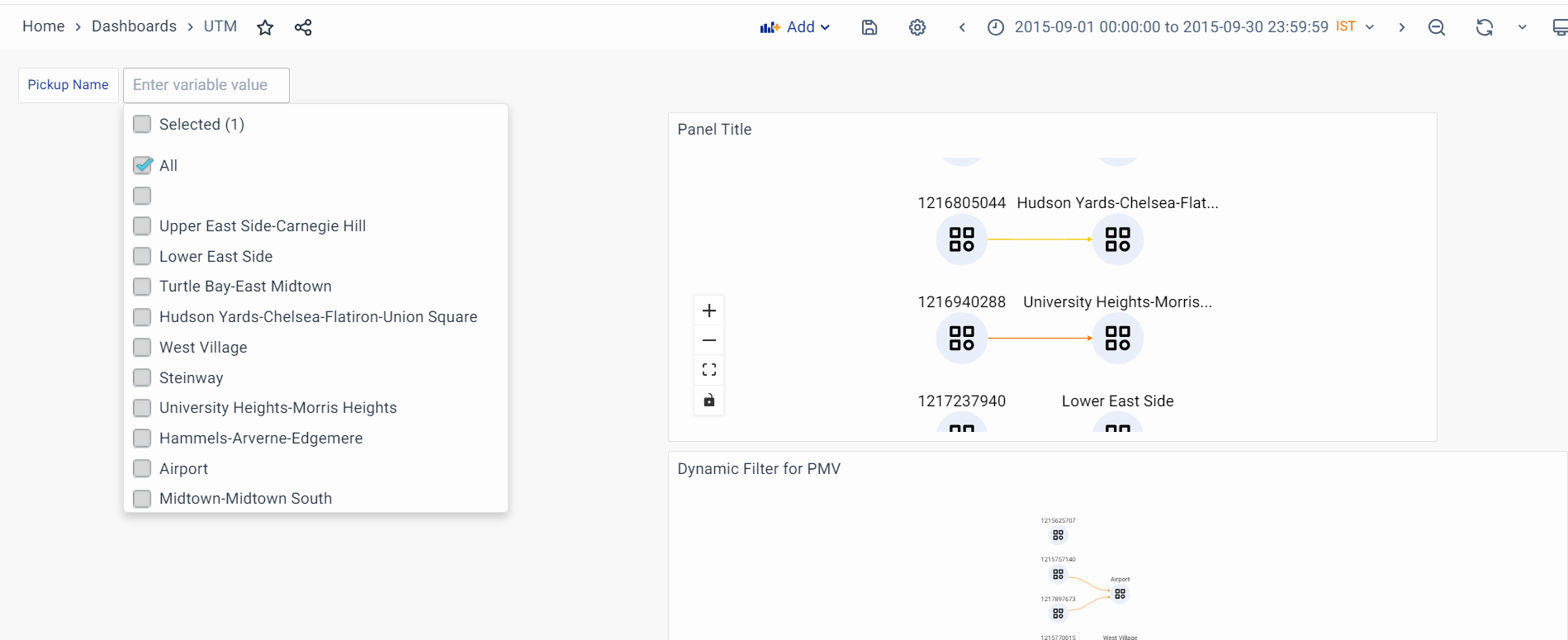 Notice that the filter values are applied, and the Dashboard now shows panels only for those selected values.