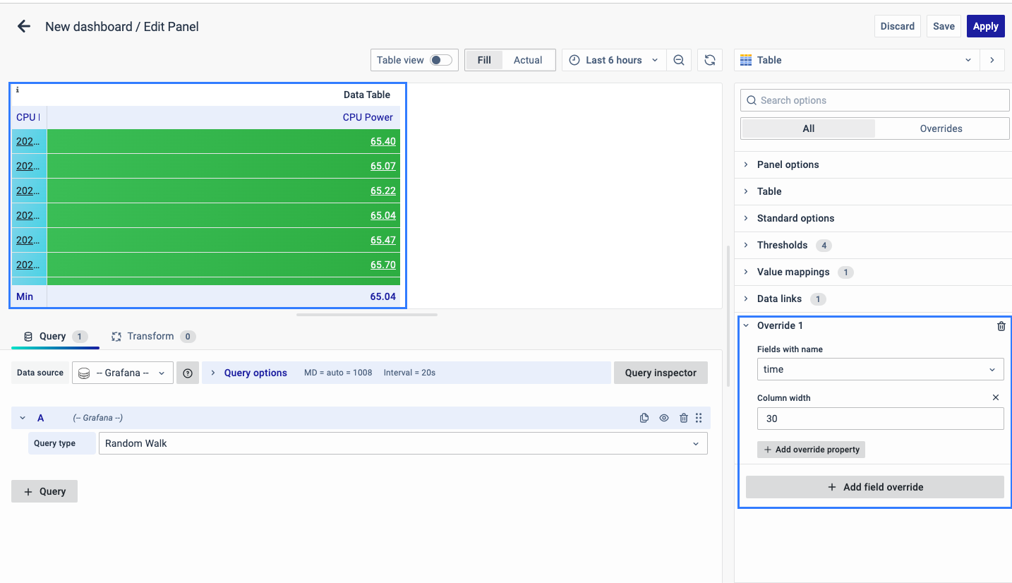 - Field Overrides and Standard Options are correctly configured.