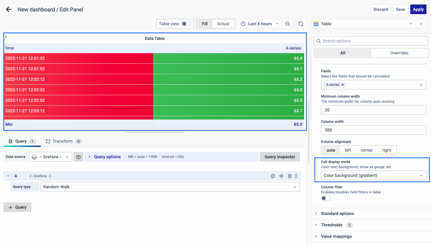- Use Thresholds to define value limits and apply color coding.