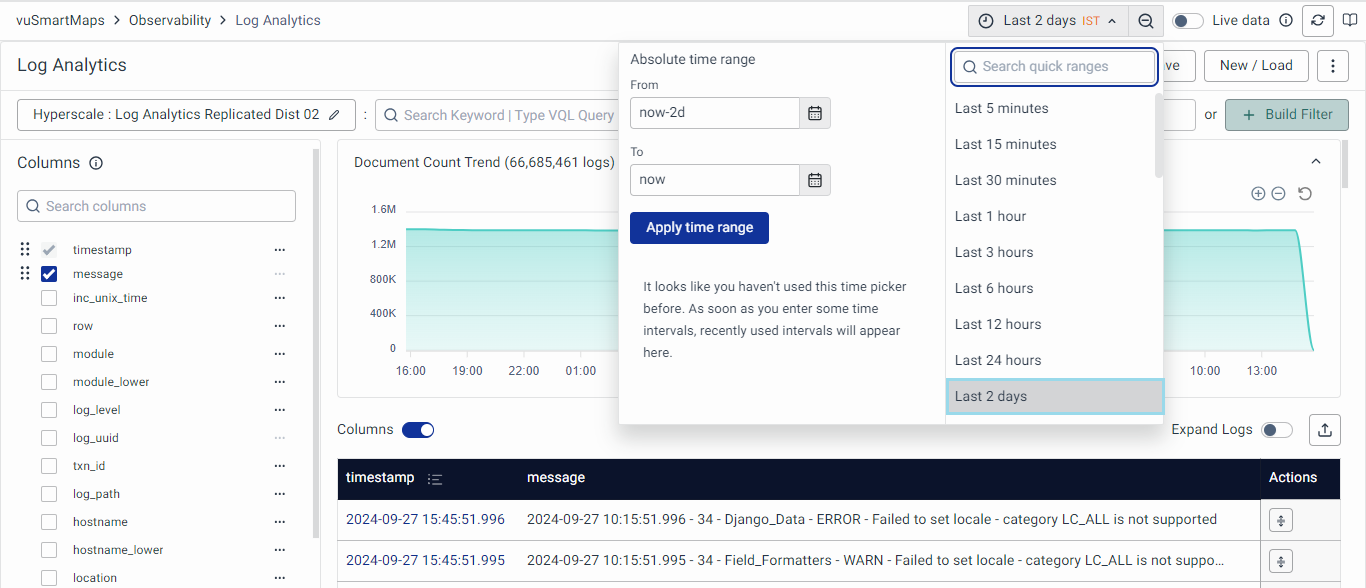 - For example, let’s select the time range of the Last 2 days.