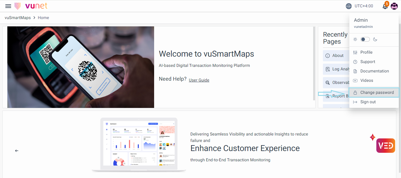 The homepage may differ from user to user, based on their specific dashboard requirements. This configuration can be managed through user management. For further details on how to configure the landing page, please refer to the User Management Guide.