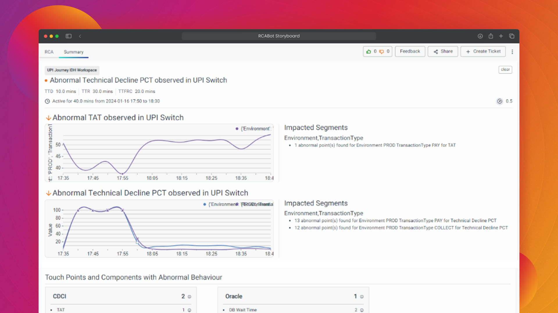 In summary, the RCABot storyboard provides valuable insights and actionable information for IT and business teams to monitor, manage, and optimize the end-to-end journey, ultimately improving user experiences and operational efficiency.