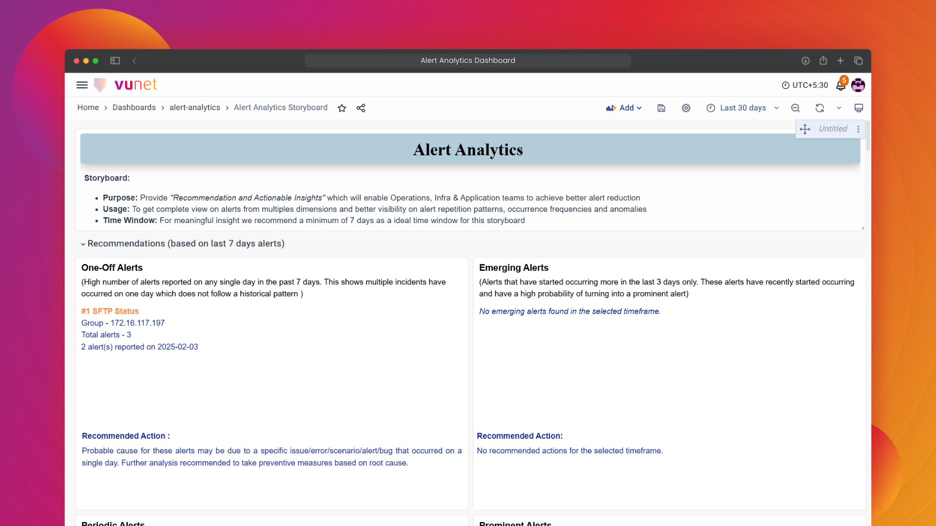 By categorizing alerts into One-Off Alerts, Emerging Alerts, Periodic Alerts, and Prominent Alerts, the panel allows teams to focus on resolving the most critical issues, and optimize system performance. This, in turn, helps improve operational efficiency and system reliability.