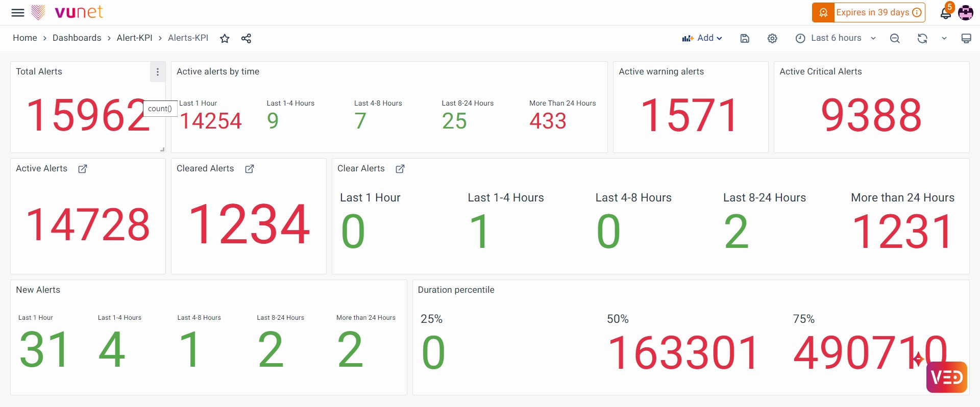 - Total Active Alerts: The current count of alerts that are currently active or unresolved.