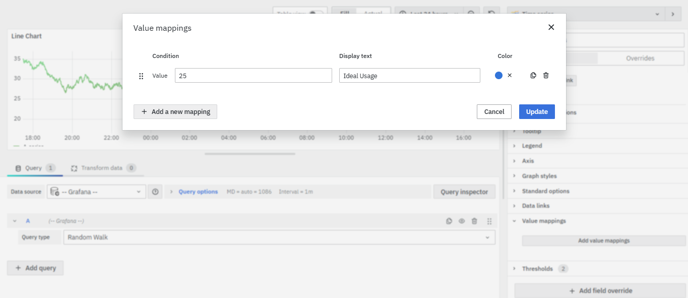 How do I apply value mappings to my line chart?