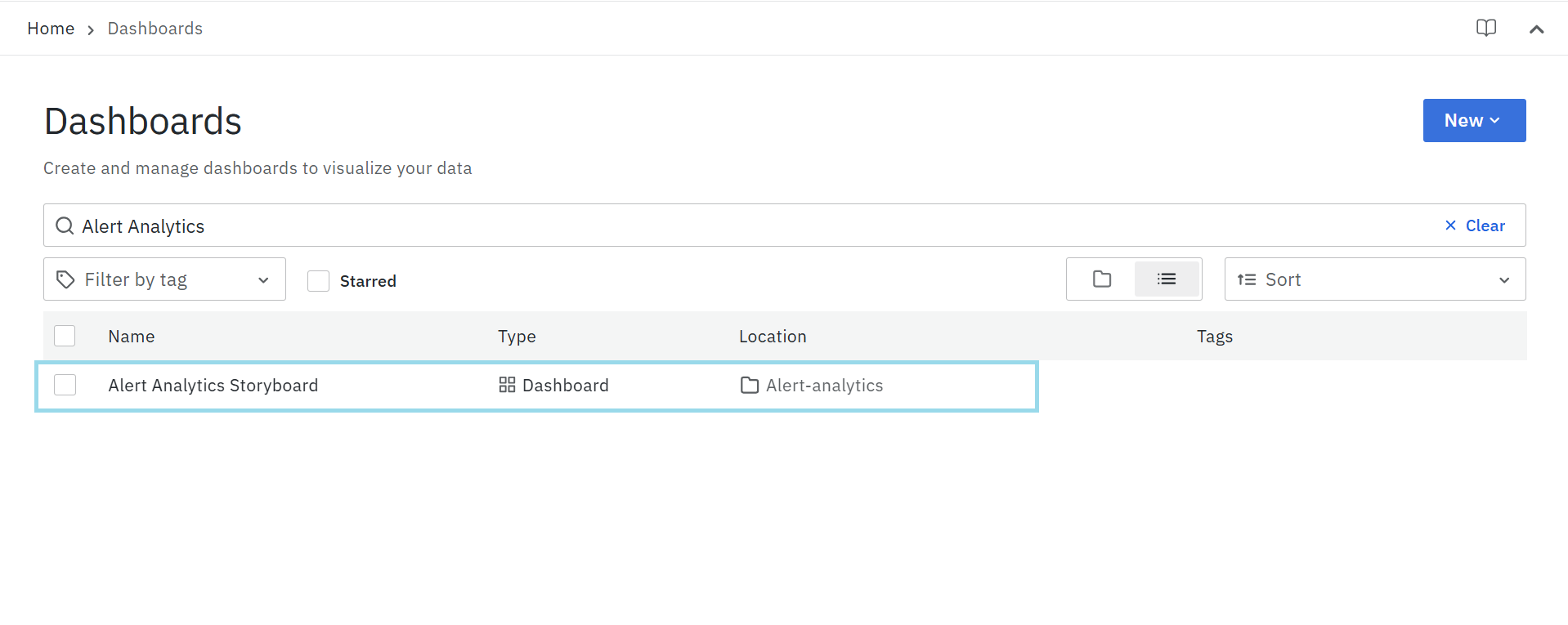To access the Alert Analytics Dashboard, navigate to the Left Navigation Menu -> Dashboards Click on the Alert Analytics folder and click on the Alert Analytics Dashboard.