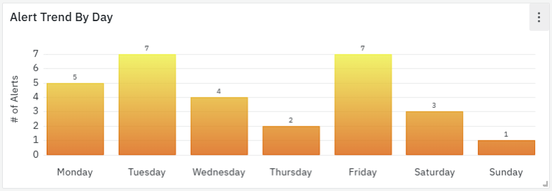 • This panel helps teams identify patterns in alert timing, allowing for more focused monitoring or investigation during peak alert hours.