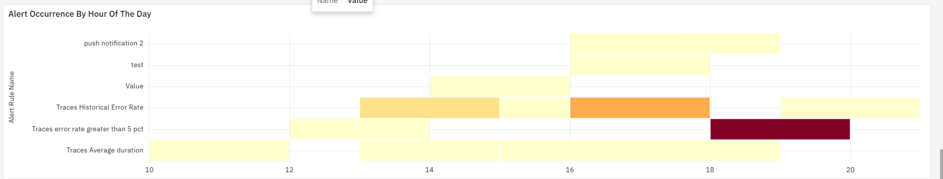• It shows how alert frequencies change over time, helping teams to monitor trends in alert severity and volume, which can indicate growing issues or improvements.