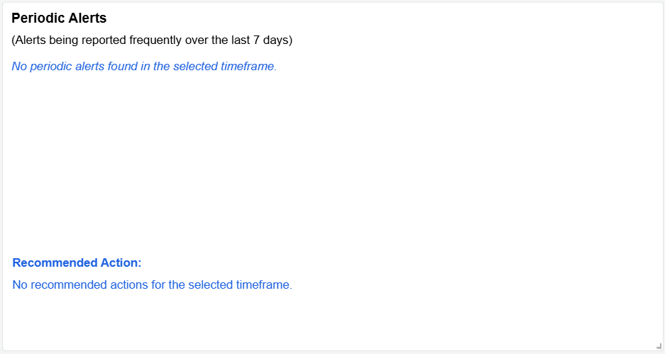 • Alerts that have been reported frequently over the past 7 days. This means these alerts occur repeatedly and consistently within this timeframe.