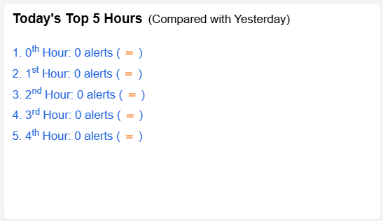 This panel highlights the specific hours of the day that had the highest alert activity, compared with the same hours from the previous day.