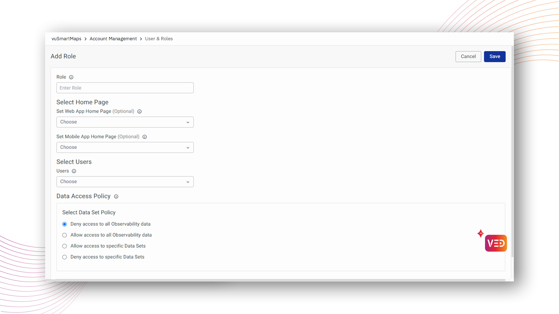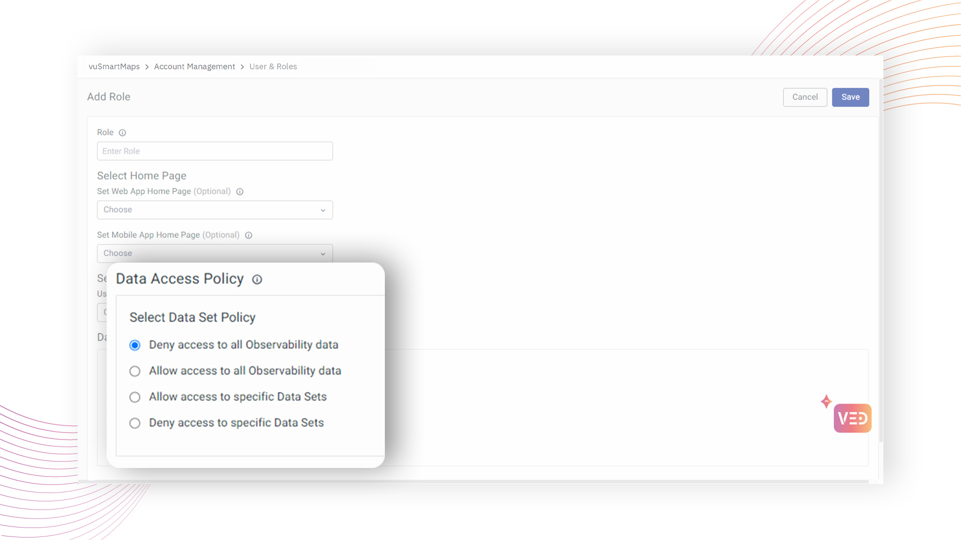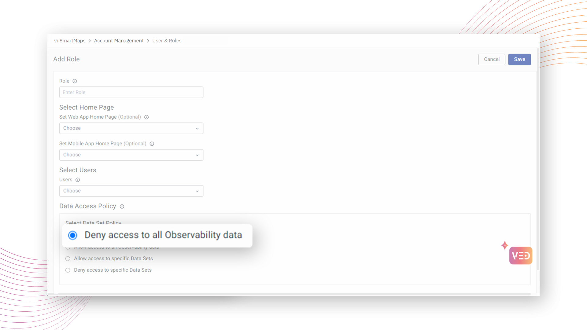 By adopting the "Deny access" policy, users can define access restrictions, enhancing security measures through a user-friendly interface within vuSmartMaps.