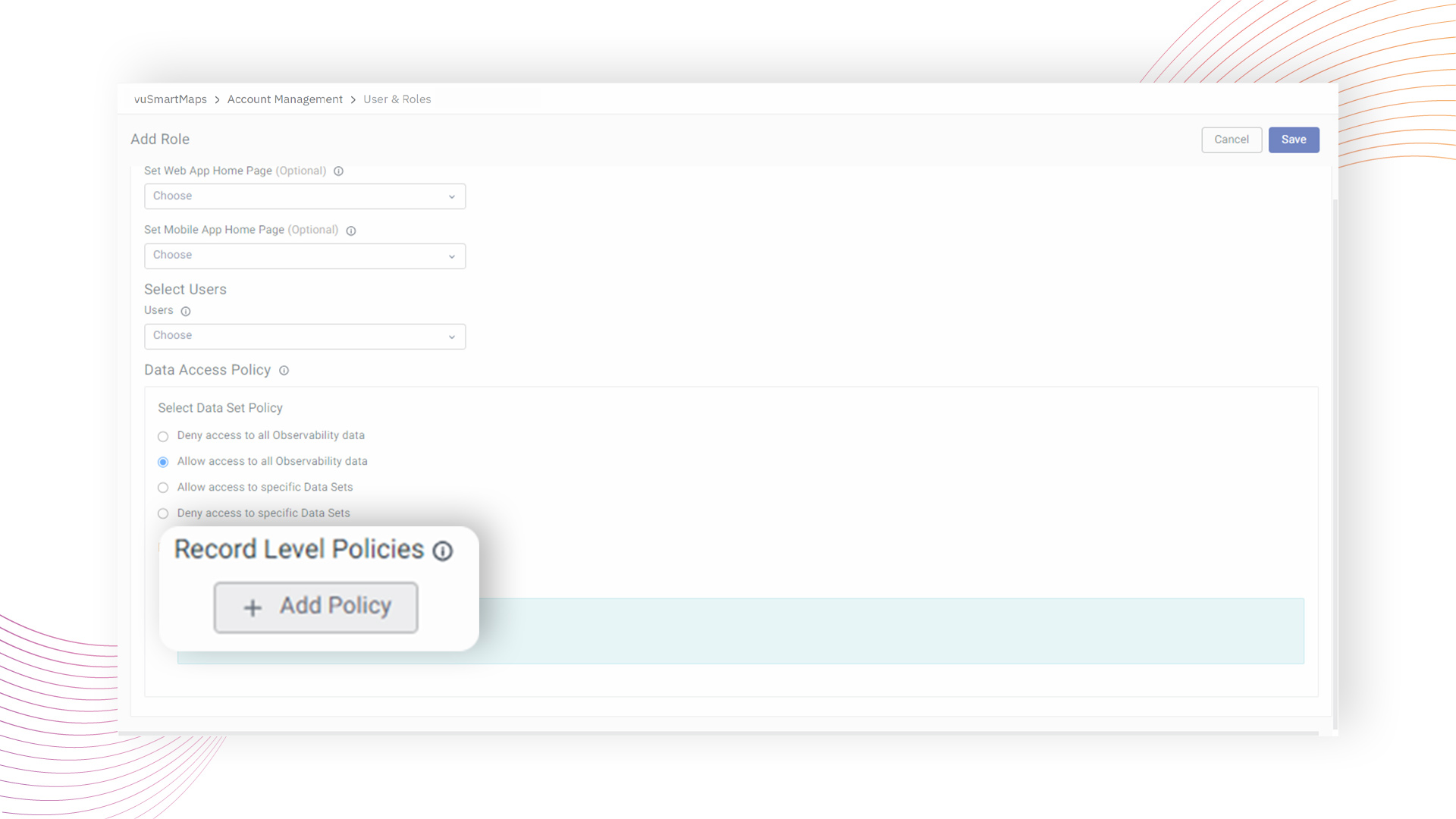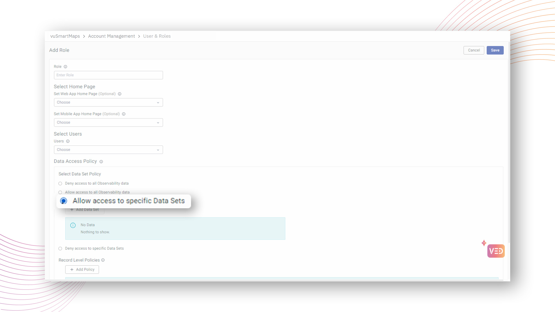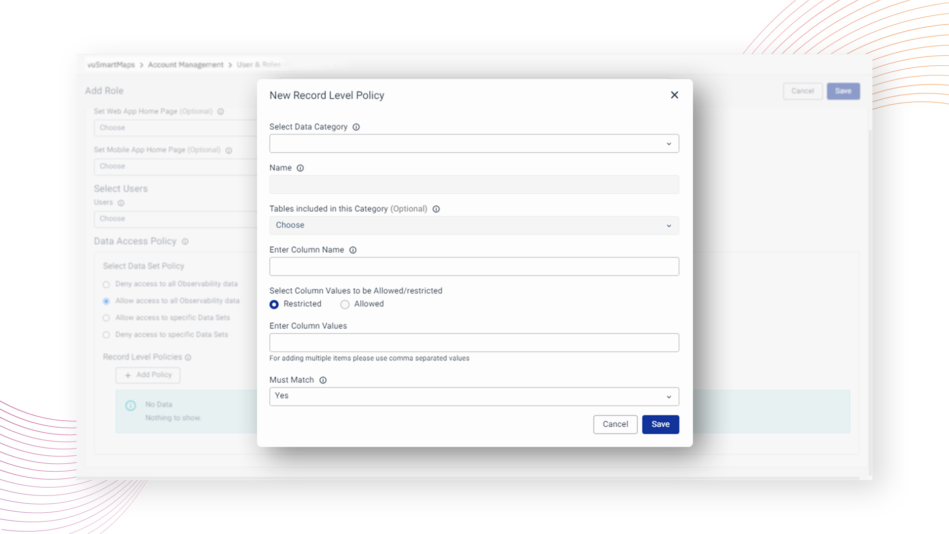 In vuSmartMaps, administrators can establish access controls at the granular level of individual records within a specific data category. This level of precision empowers administrators to define access policies tailored to their organization's requirements.