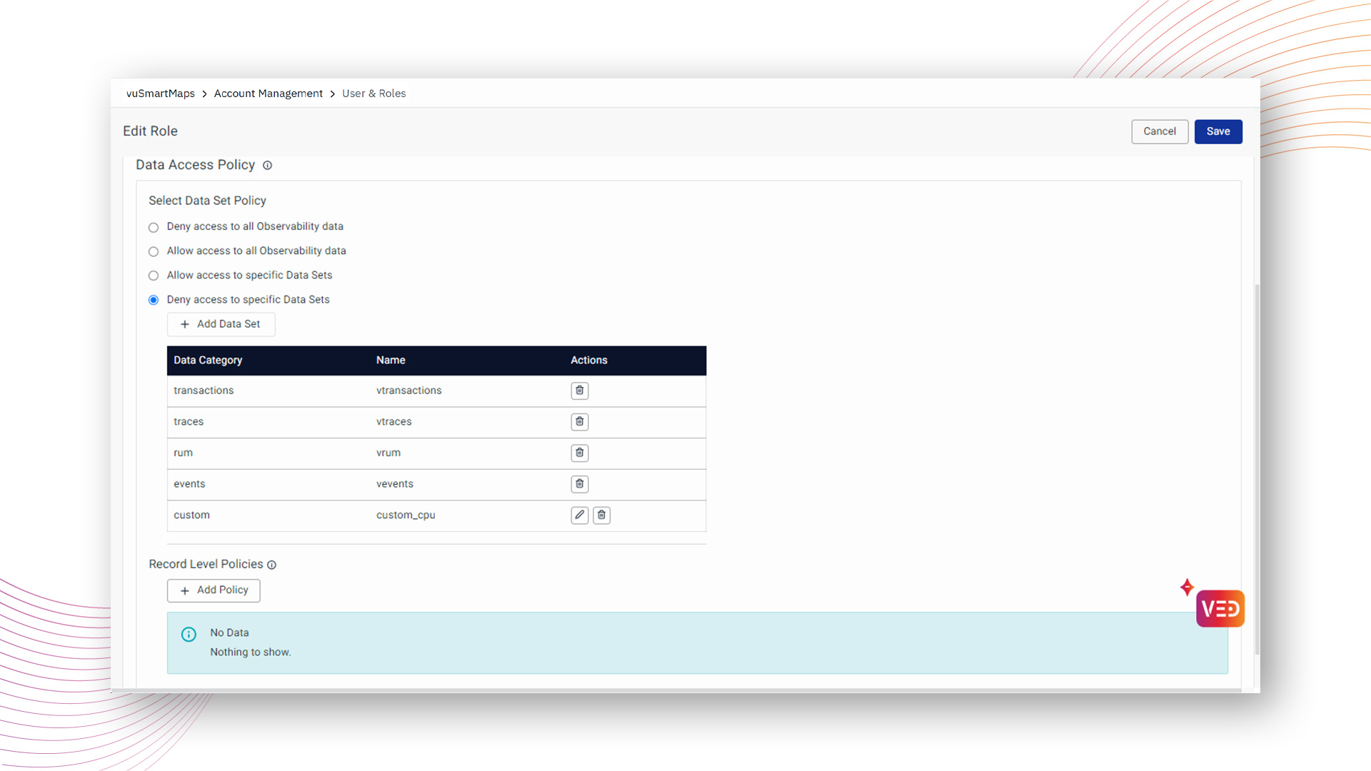 Administrators possess the capability to impose access restrictions on entire observability datasets for specific roles, significantly enhancing data security. This measure explicitly denies access to observability data for roles where heightened security is a priority.