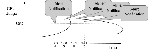 When an alert condition changes from false to true, notifications are sent through all configured channels.