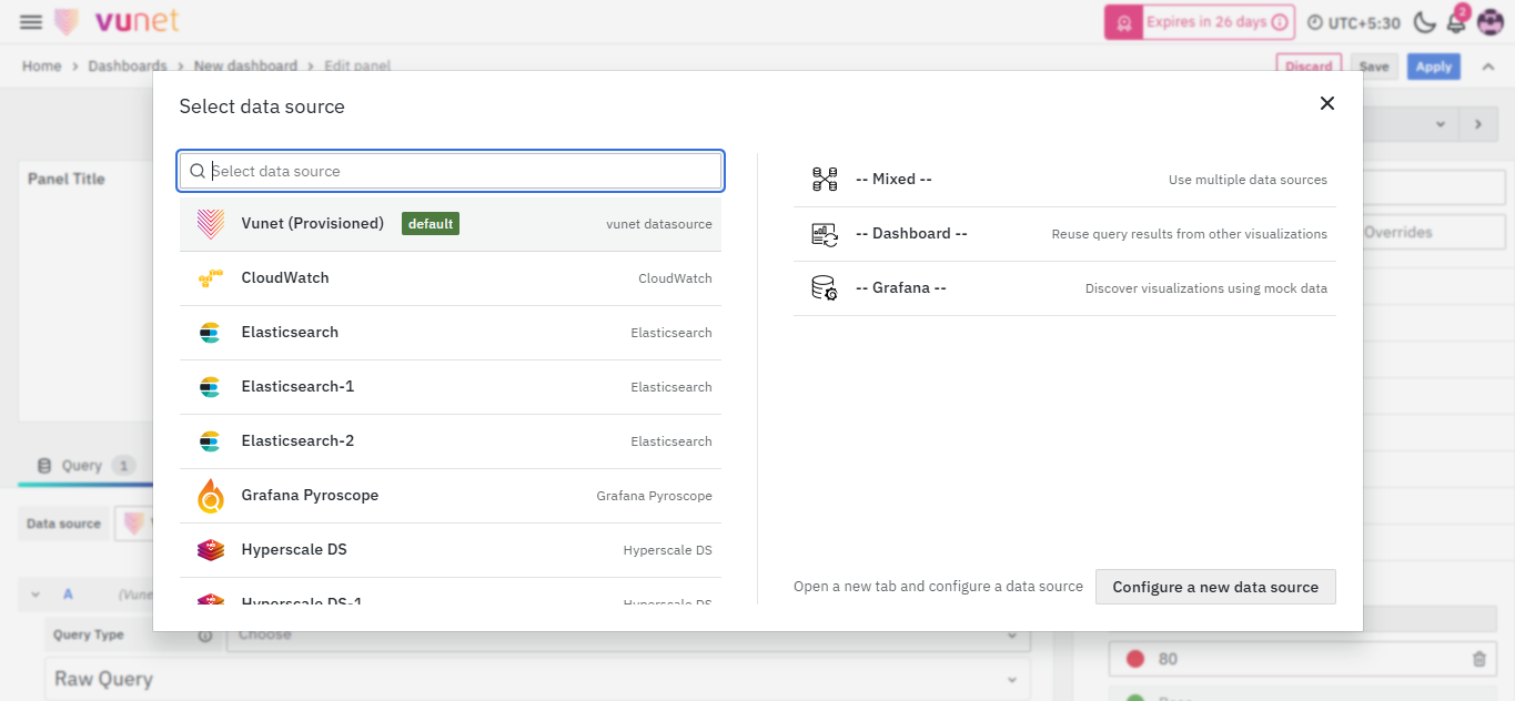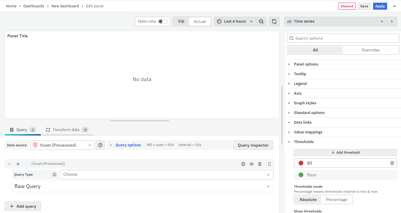 A dashboard is a collection of panels organized in rows. Each panel is a visualization unit with its own data query editor. This editor is tailored to the panel's chosen data source, helping you create the right visualizations.