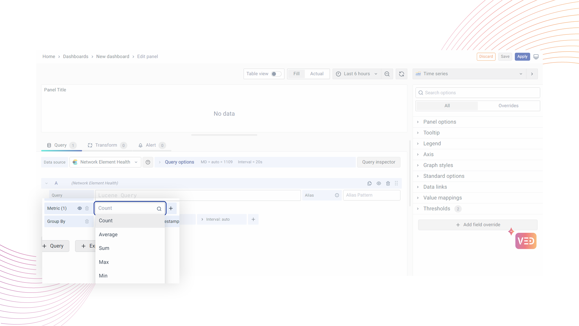 For any query selected, one has to choose a Metric. It is based on the parameter you want to visualize on the y-axis such as count, average, sum, max, etc.
