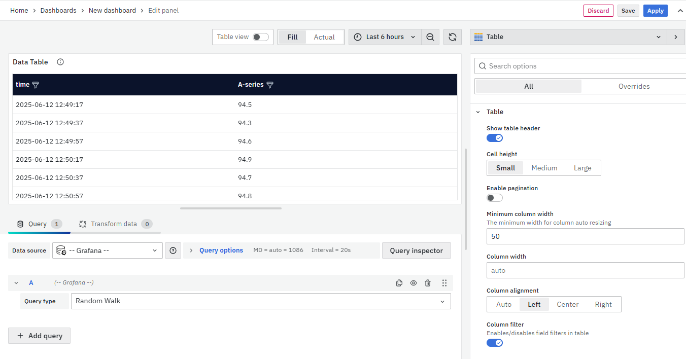You have now learned how to configure the Data Table, change the panel settings, and more. You can save and edit the panel later too.