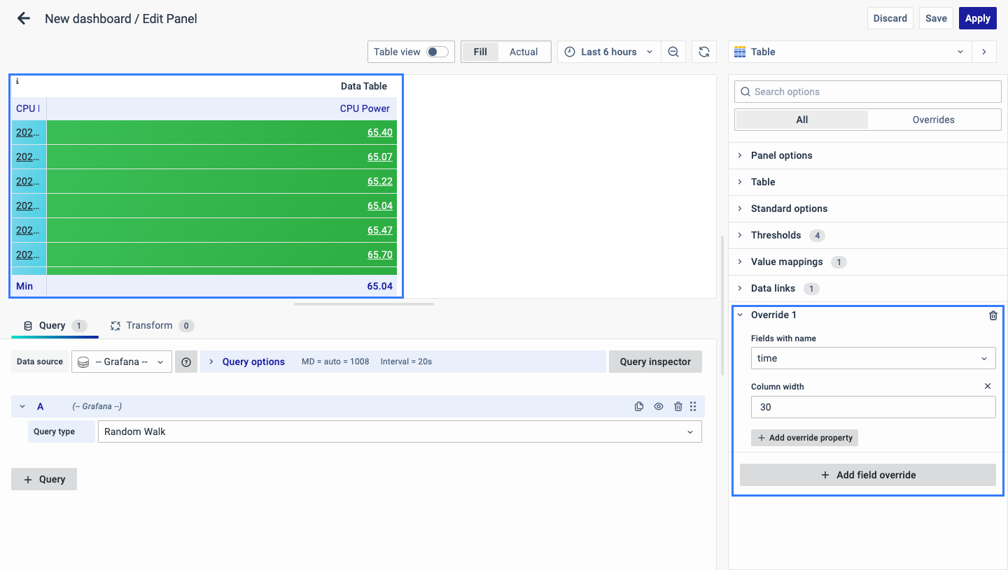 - Field Overrides and Standard Options are correctly configured.