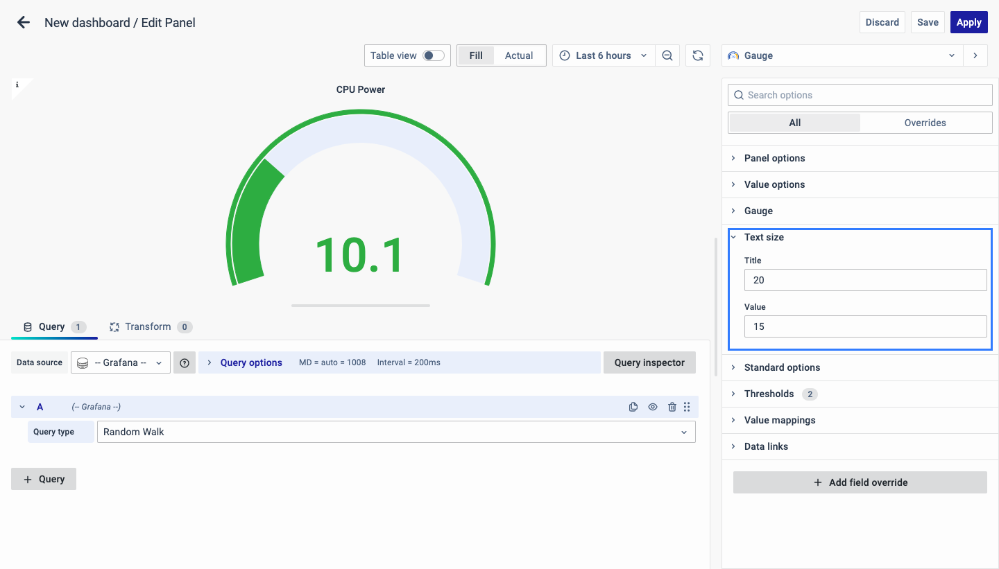 The Text size option allows you to change the Gauge text and value size to be displayed on the chart.