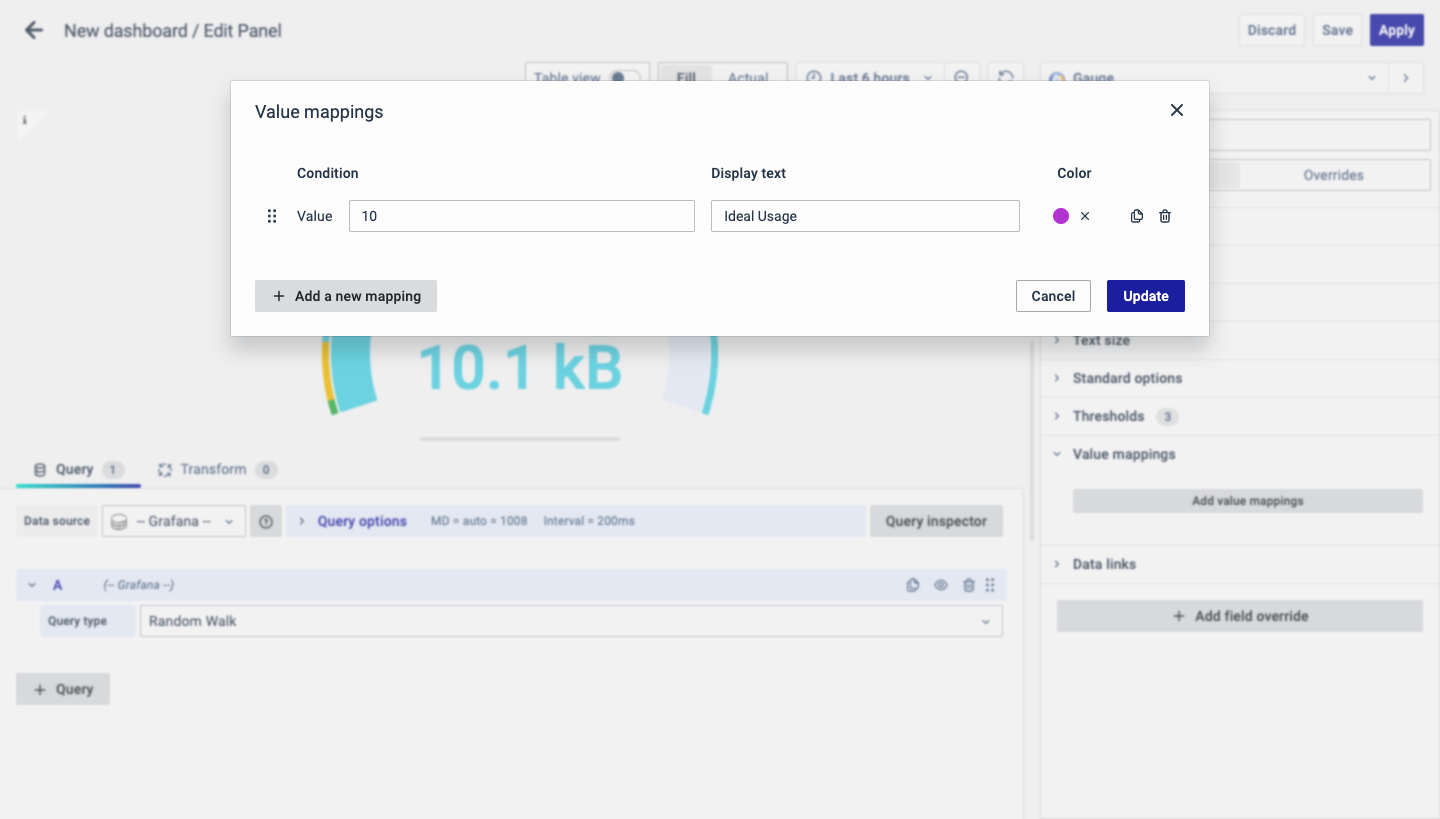 The Value Mappings option allows you to find a certain value and wherever the value lies, the display text is displayed. If there is a similar value in the data, it highlights in the form of the color selected.